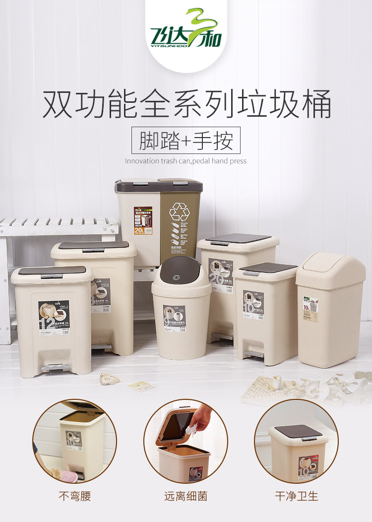 飛達三(sān)和G2630 / G1830 / G1840 雙蓋垃(lā)圾桶(6.5L/10L/15L)產品特點